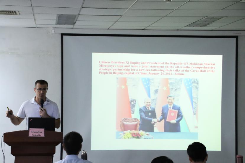 10月17日,在滨海中校区9号楼506报告厅,Samadiy教授作了题为“Integrated processing of industrial waste, mineral, and geothermal waters in Uzbekistan”的学术报告,重点介绍了乌兹别克斯坦无机矿产资源分布、储量和资源开发利用现状,提出了中乌双方发挥各自优势特色学科的合作前景,为我校师生呈现了一场高质量的学术报告,海洋与环境学院、化工与材料学院近百名师生参与学术交流。
