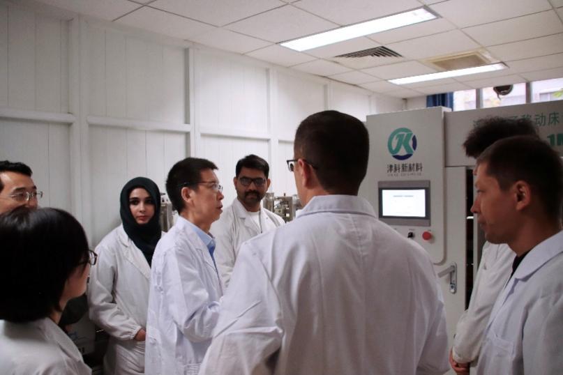Samadiy教授先后就乌兹别克斯坦固体矿产资源、地热水资源的开发利用现状进行汇报交流。我校海洋与环境学院院长邓天龙教授、青年教师赵凯宇分别针对液体锂矿资源绿色高效开发利用和稀散元素铷铯锶等分离提取技术进行广泛交流,展示了团队自主研发的撬装式津科智能连续移动床。双方共同开展了海卤水提锂中试生产试验,加强了中乌双方的国际科技合作与技术交流。