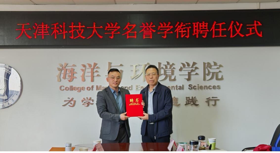 路福平分别为中国环境科学研究院天津分院院长张依章研究员颁发兼职教授聘书,江苏天科汉膜流体技术有限公司总经理张楠颁发产业教授聘书。海洋与环境学院党委副书记、院长邓天龙介绍了兼职教授张依章、产业教授张楠的基本情况。