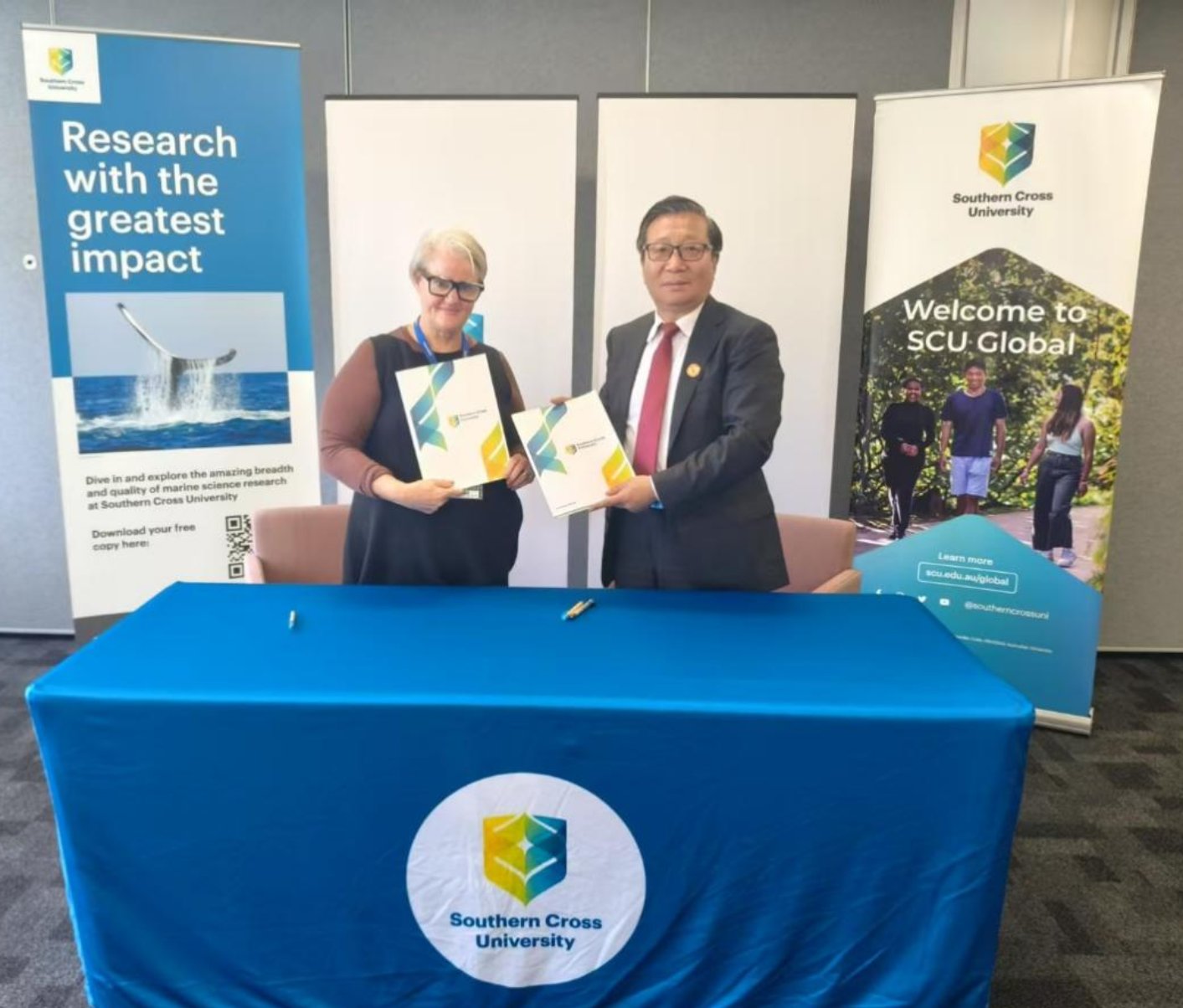 访问中,双方共同召开了合作办学项目管理委员会会议,总结回顾了自2007年以来合作办学项目的发展历程,对以往合作所取得的成果表示满意,并就进一步扩展项目规模、提高人才培养质量达成一致。代表团一行先后与南十字星大学副校长托马斯.罗奇、玛丽.斯庞博格及该校有关部门、院系负责人进行了深入洽谈。双方着重探讨了在海洋科学、环境科学、管理学、生物医药、人工智能等领域开展研究合作的可行性,在开展研究生联合培养、建设联合研究中心、加强两校师生交流互访、拓宽国际合作渠道等方面形成了广泛共识,并在达成合作意向的基础上签署了《合作谅解备忘录》。