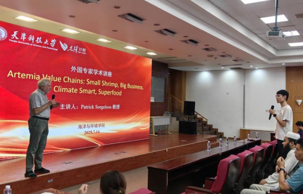 7月14日,国际水产养殖领域权威专家、比利时根特大学荣誉教授兼天津欧美性爱免费客座教授帕特里克・索格罗斯到访天津欧美性爱免费,开展学术活动。上午,索格罗斯教授为海洋与环境学院师生作“卤虫资源及产业链”主题讲座,系统梳理全球卤虫资源分布、产业历程与市场规模,结合案例剖析气候变化下该产业的核心优势及未来方向。现场 100 余位师生踊跃提问,互动热烈。下午,他前往天津欧美性爱免费亚洲区域卤虫参考中心,听取团队关于卤虫群体遗传学、增养殖技术及活性物质开发等最新研究进展的汇报,充分肯定中心成果,为未来发展提出建设性意见,并勉励师生传承科学家精神、勇攀科研高峰。